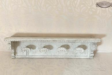 ❌ può essere spedito solo con Bartolini o UPS!!!Attaccapanni Vintage in legno dipinto e decorato a mano in stile Shabby Chic.