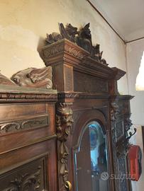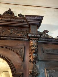 mobile attaccapanni per ingresso, fine 800 / inizio 900 . con specchiera e porta ombrelli. buone condizioni, un po' graffiato ma con tutti i pezzi, i contenitori di stagno per gli ombrelli sono un po' piegati, necessita di smontaggio per il trasporto