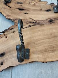 attaccapanni artigianale ricavato da un tronco di melograno verniciato con finitura naturale e attaccapanni in ferro grezzo verniciati trasparente ottimo per qualsiasi stile di arredo (se volete disponibile c'è abbinato il tavolino da salotto disponibile)