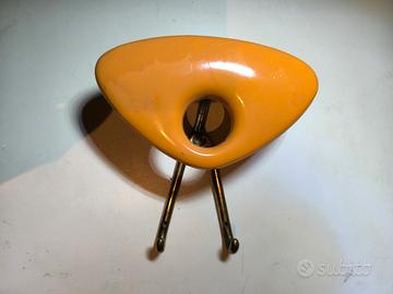 Tre attaccapanni con foro centrale per ombrello. Corpo metallico in ottone. Plastiche leggermente usurate