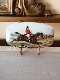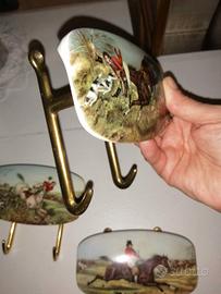 Attaccapanni vintage tre pezzi Placca dipinta Ganci in ottone