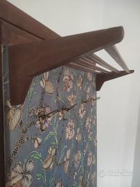 Attaccapanni Vintage in legno composto da un pannello rivestito in stoffa e 4 ganci appendiabiti. Dimensioni 90x32 altezza 195. Disponibile alla spedizione a cura e carico dell'acquirente o ritiro sul posto.