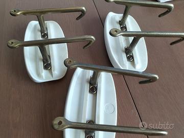 attaccapanni appendiabiti vintage in ottone-ceramica,tre pezzi