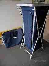 Vendo mobiletto pieghevole per riporre pentole, utensili vari, ecc., usato ma in ottime condizioni. Il mobiletto pieghevole Brunner è un robusto mobiletto multiuso con telaio CROSS in profili rettangolari di alluminio e giunto centrale in metallo. Tutti i piedini sono regolabili in altezza. Dispone di quattro ripiani interni e di un piano di lavoro in bambù. Sistema senza montaggio. Include una borsa per il trasporto. L'ampio mobiletto con anta con cerniera offre ampio spazio per alimenti e utensili da cucina. Dimensioni: 60 x 49 x H 140 cm. Prezzo nuovo: circa 180 €. In vendita a 89 €. Ritiro ad Aldino.