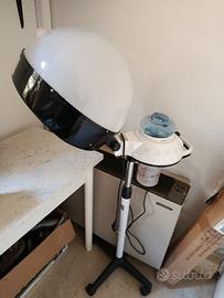 Modello CERIORRI(acquistato nuovo nel 2020):lampada per colore e schiariture con piede a rotella in ottimo stato(550 euro). VAPORIZZATORE (acquistato nuovo nel 2022) per impacchi e ricostruzioni ben conservato(50 euro), Per xhi fosse interessato ho ancora prosotti FARMACA INTERNATIONAL (colori ,sciampi,balsami,oli,foale curative ecc..)per maggiori informazioni chiamare .grazie