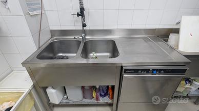 per trasferimento vendo le seguenti attrezzature: - Cucina a gas MBM misure 70x73x85 (4 fuochi, 28 kw) Prezzo: 1300 - cappa a parete acciaio inox Misure 180x90x40 Prezzo: 650 - lavello a sbalzo 2 vasche+ sgocciolatoio Misure: 160x70x85H) Prezzo: 550 - lavastoviglie frontale kastel 220/380 Misure: 57.2x63x81.4H Prezzo: 1300 - Motore cappa Prezzo: 500 - 2 canne fumarie diametro 35 (1 coibentata, 1 no) Ciascuna da 24 mt (tubi + curve + fascette) Prezzo: 2000 per entrambe - 23 sedie legno massello Prezzo: 30 euro l'una - 9 panche (base in ferro, seduta in legno) con cuscino Prezzo: 30 euro l'una - 6 tavoli legno massello 80x80 Prezzo: 100 euro l'uno