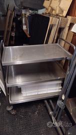 vendo n.2 banchi lavoro in acciaio,n.2 armadietti dipendenti, cappa snack da 1 metro con motore, granitore a 2 campane, carrello in acciaio, barriera aria.
