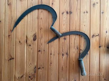 Attrezzi agricoli antichi da arredamento Falce, giogo, ferro di cavallo, attrezzo da mattatoio. Tutto in legno e ferro. Posso spedire con spese a carico del destinatario e pagamento anticipato.