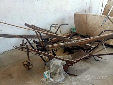 Sedie e attrezzature agricole da restaurare, ideali per arredare un agriturismo. Hanno bisogno di essere rinnovate, carteggiate e riverniciate , ma non sono rotte.
