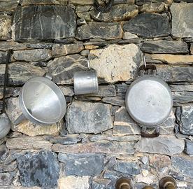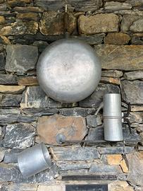 Attrezzi per cucina , antichi in alluminio, n 10 pezzi e padella per caldarroste in ferro antica