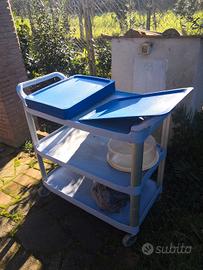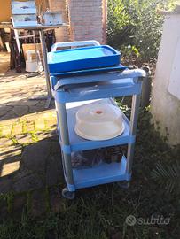 Sgabello per stiro o per tavolo tecnico- carrello porta vivande +vassoi in pvc - Sgabello con rotelle