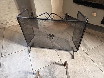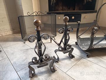 Vendo coppia di alari, porta legna, copri fuoco e attrezzi (paletta, molletta, spazzola di ferro e attizza fuoco) tutto in ferro battuto. Ritiro da parte del compratore. Tutto per € 100,00 (cento).