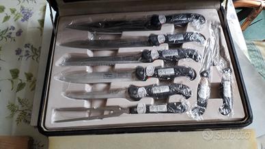 VALIGETTA PELLE NERA CON SERRATURA COMBINAZIONE,DELLA SOLINGEN GERMANIA CON SET COMPLETO X LA CUCINA E LA TAVOLA ,ACCIAIO INOX USATO 4 5 VOLTE E NON TUTTO (POSATE E COLTELLI MAI USATO)NB PER ELEVATO PESO DELLA VALIGIA IL COSTO DELLA SPEDIZIONE ,PACCO 30 EURO X ITALIA , PER ESTERO 65 EURO(EUROPA OCC. X ALTRE NAZIONI COSTO DA CALCOLARE)