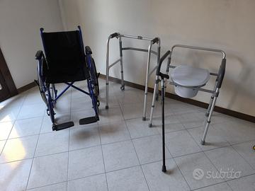 Si vendono cartozina a rotelle usata ma innottime comdizioni,vastone mai usato,comoda usata solo una volta e deambulatore usato solo in casa quindi in ortime condizioni