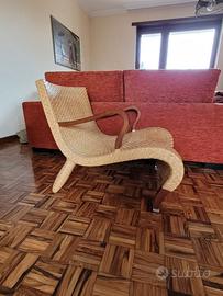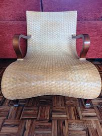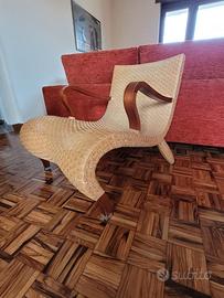 Vendo elegante chaise longue di design "Compagnia delle Filippine", firmata Antonio Citterio per B&B Italia (anni ’90). La struttura è realizzata in legno di faggio ed è completamente rivestita da cinghie in pelle intrecciata. Il profilo del sedile si unisce senza soluzione di continuità alle gambe posteriori, creando un'elegante linea continua, mentre le gambe anteriori sono sormontate da sabot in alluminio, che richiamano la precisione di Citterio nella lavorazione dei materiali. I braccioli scolpiti in legno massiccio completano le curve della struttura, aggiungendo comfort e raffinatezza. Larghezza: 67 cm - Profondità: 87 cm - Altezza: 71 cm - Altezza della seduta:35 cm La sedia si presenta in buone condizioni generali: mostra normali segni di utilizzo nel tempo, coerenti con l’età e l’uso, senza difetti strutturali (come documentato nelle foto). Si segnala che eventuali lievi differenze o irregolarità nella pelle intrecciata sono caratteristiche tipiche del materiale e della lavorazione artigianale, e ne attestano l’autenticità e il pregio. Ideale per ambienti moderni o classici, perfetta sia come elemento d’arredo che come pezzo da collezione di design. Eventuale spedizione da organizzare a cura e spese dell’acquirente.