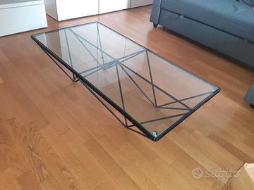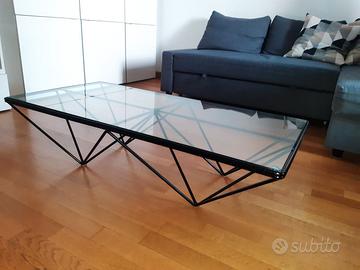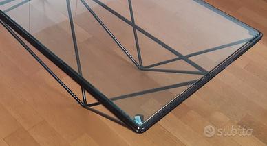 Struttura in tondino di acciaio verniciato, nero, piano in vetro incassato nel tondino di contorno superiore. ORIGINALE DELL'EPOCA.