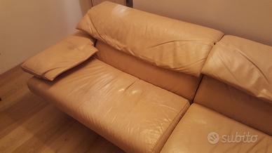 Alanda divano, Paolo Piva per B&B Italia, 2 cuscini 3 sedute in pelle pieno fiore colore beige. Movimento per braccioli e poggiatesta con diverse posizioni di bloccaggio.
