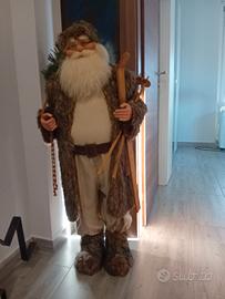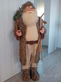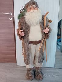 Splendido Babbo Natale di grande dimdnsione (118); realizzato con grande cura nei dettagli: volto in resina di qualità, barba folta, abiti in stile montano con pelliccia sintetica,occhiali, bastoncini da sci e sacco con pigne e rami.