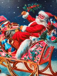 Babbo Natale e slitta, vetrofania vintage