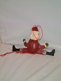 Vendo simpatico Babbo Natale marionetta in legno originale anni ’80/'90, dipinto a mano e completo di cordino tirante che fa muovere le gambe in modo scenografico, perfetto da appendere all’albero, alla maniglia della porta o come decorazione da mensola per un Natale dal gusto retrò.