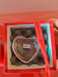 Vendo Cuore di cristallo Baccarat, originale, appena scartato. Trattai di regalo appena ricevuto risultato "non adatto al destinatario". Ancora nella sua scatola e pacchetto originale, e' un perfetto regalo natalizio di prestigio. Assicuro spedizione celere in caso di acquisto. Ha un costo di acquisto in negozio/gioielleria di almeno 280€, per cui a 200€ e' gia'un bell'affare: onde prego astenersi perditempo con richieste di sconti improbabili