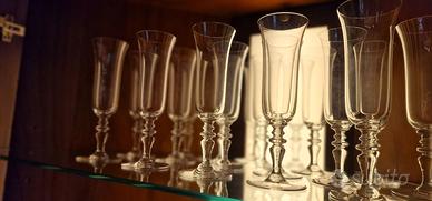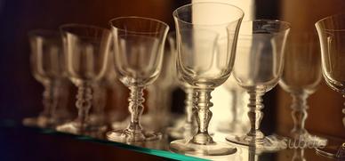 Propongo un’opportunità rara per amanti dell'arte della tavola e del cristallo di lusso: un eccezionale e completo servizio originale Baccarat, modello "Nancy" (versione liscia). Un classico intramontabile caratterizzato dal pregiato gambo lavorato ad anelli sovrapposti e dalla straordinaria brillantezza tipica della maison francese. Il set viene venduto esclusivamente come unico pacchetto indivisibile. Ho deciso di proporlo in questo formato perché è ideale per chi cerca un servizio perfetto per 12 o 18 persone, avendo già inclusa una dotazione massiccia di ricambi originali per garantire la massima tranquillità nel tempo. Il lotto è così composto (54 pezzi totali): 18 Flûte da Champagne (Tutte in condizioni impeccabili) 18 Bicchieri da Vino (Tutti in condizioni impeccabili) 18 Bicchieri da Acqua (17 in condizioni impeccabili + 1 che presenta una leggera filatura interna, che lascio in omaggio come pezzo di scorta/esposizione) Tutti i cristalli sono originali, recano il marchio autentico Baccarat inciso all'acido sulla base e sono stati conservati da me con estrema cura. Il cristallo è limpido, brillante e privo di opacizzazioni o graffi (salvo la filatura indicata). Note Importanti: Confezione: Il servizio non è provvisto delle scatole originali. Consegna: Data l'estrema fragilità e l'elevato valore del servizio, prediligo e consiglio caldamente il ritiro a mano in zona Varese. Spedizione: Valuto un’eventuale spedizione solo tramite corrieri specializzati o servizi con imballaggio professionale e assicurazione totale. Ogni costo e rischio relativo al trasporto sarà esclusivamente a carico dell'acquirente.