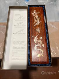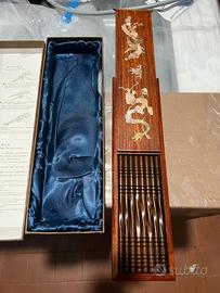 Bachette cinesi antiche, scatola originale in legno + 8 set di bacchette tutte in legno.