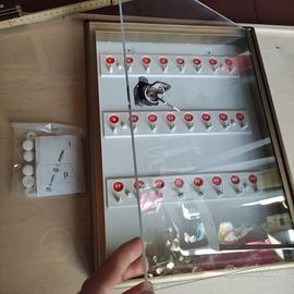 Bacheca Alubox in alluminio anodizzato bronzo, 24 ganci ,dimensioni 30x40x5 cm, con sportello in plexiglass, chiusura con chiave (2 pezzi) , nuovo.