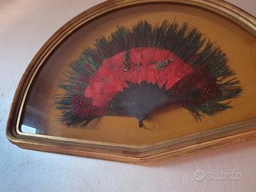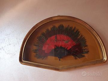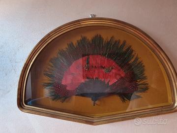 Bacheca con Autentico Ventaglio Africano in piume