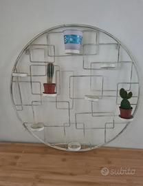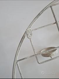 Bacheca circolare in metallo verniciato bianco, elemento decorativo in stile shabby. Portacandele o vasetti. Diametro 60 cm.