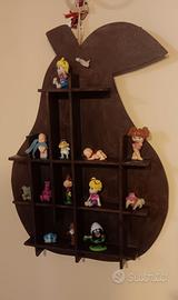 BACHECA ESPOSITIVA IN LEGNO CON VARI SCOMPARTI PER PICCOLI OGGETTI MISURA CM.47 (h) X 34 (largh. max) COMPLETA DI PUPAZZETTI FORMA E CONTENUTO COME IN FOTO
