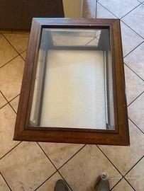 Vendesi tavolinetto bacheca espositore in noce e vetro molato apribile dall’alto misure cm 47x35x70