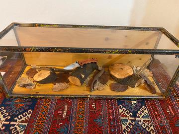 Bacheca handmade costruita per oggetti come coltelli, bussole, oggetti vintage.