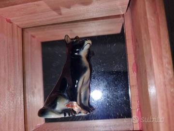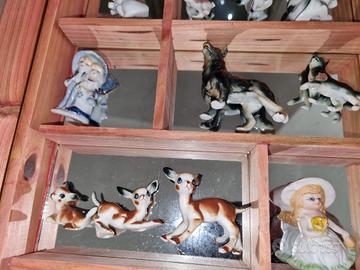 bellissima Bacheca portaoggetti in legno e fondo a specchio completa di figurine di vari animali quasi tutti di pregio della mitica marca bone china, miniatura bambi, cani, pinguino , gatti ecc Vintage Deer Fawn Bone China Japa