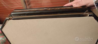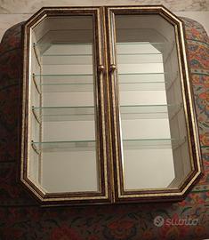 Bacheca con specchio e due ante in vetro, 4 ripiani in vetro. Misure: altezza 60 cm, larghezza 50 cm, profondità 11 cm.
