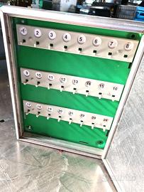bacheca portachiavi usata, si tratta di un armadietto per custodire chiavi in: case, uffici, alberghi, autorimesse, aziende, strutture pubbliche, etc. completo di serratura ma manca la chiave. dimensioni: 29X4cm h37cm solo ritiro in sede