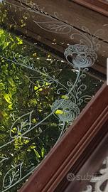 bacheca artigianale , realizzata in legno, vetro inciso e specchio. può essere utilizzata sia a parete che da tavolo. prezzo 80.00 .misure ingombro 58x48.