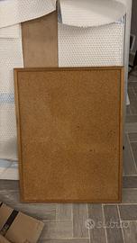 Pratica bacheca in legno e sughero. Misure: 49x64cm