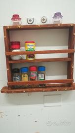 Realizzazione artigianale in legno impregnato ciliegio bacheca per spezie sia da appoggio che da appendere a muro