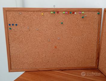Vendo 2 bacheche in sughero, con puntine e ganci per essere appese. Misurano in larghezza 60 cm, altezza 40 cm,profondità 1,5 cm.