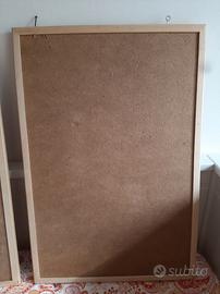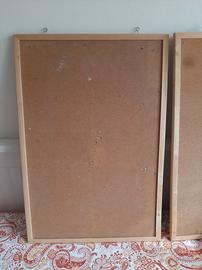 Disponibili 2 bacheche in sughero con cornice in legno chiaro + 16 puntine incluse, 8 per ogni bacheca. Possono essere usate per appendere foto, appunti o ricordi. Misure 40x60 cm. Presentano qualche segno del precedente utilizzo, ma perfettamente utilizzabile.