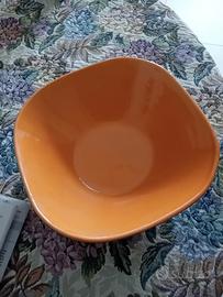 contenitore in terracotta smaltato e lavorato arancio,marrone. utile per mille usi...
