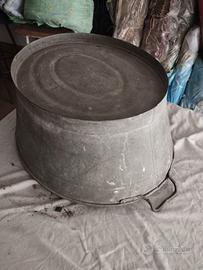 Un Secchio e tre Bacinelle in metallo anni '50 di diverse dimensioni: piccola, media e grande per arredamento giardino - il prezzo dipende dall’articolo - eventualmente si accettano offerte per vendere tutto in blocco