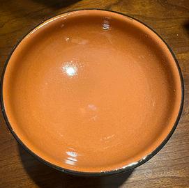 Vendo set di 6 fujot originali per Bagna Cauda, realizzati in terracotta smaltata di alta qualità. Gli oggetti sono stati ritrovati in cantina e sono assolutamente nuovi, mai usati, come visibile dalla lucentezza della ceramica e dal fondo dei tegamini privo di segni di fiamme. Il set è composto da 6 basi porta-candela e 6 ciotole superiori coordinate. Ottimi anche per fondute di formaggio o cioccolato. Dettagli: • Stato: Nuovo, mai utilizzato. • Quantità: 6 pezzi completi (base + tegamino). • Colore: Terracotta naturale con bordi marrone scuro.