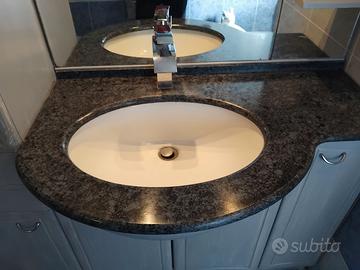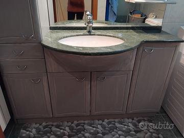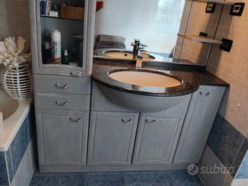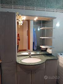 Vendo 2 bagni, 1 con piano in marmo verde, il 2 con piano in marmo blu. In origine laminati bianchi, poi tinteggiati in grigio, effetto chabby. Cambio per ristrutturazione. Misure: L 140cm P 35cm H 192cm Il lavabo ha profondità cm 59. Vendo anche singolarmente a €250.
