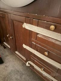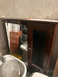 Cedo gratuitamente mobili arredo bagno inclusa specchiera con luci, sanitari con rubinetteria, in ottimo stato, regalo causa cambio arredo. Colore legno noce con alcuni dettagli oro.