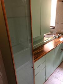 Vendo arredo bagno in vero legno color verde pastello e ripiano color legno, armadietto in vetro. Spedizione a carico dell’acquirente. Prezzo trattabile.
