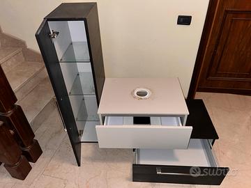 Mobili bagno sospeso. Misure pensile alto 26 x 40 h 120; pensile basso e per lavello 70 x 50.5 h 26.5.