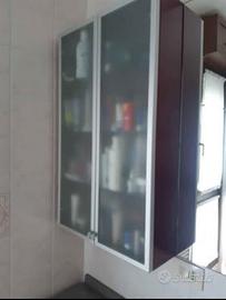 Specchio 108x90 con 2 mensoline integrate e pensile con vetro a 4 ripiani 54x90x20.
