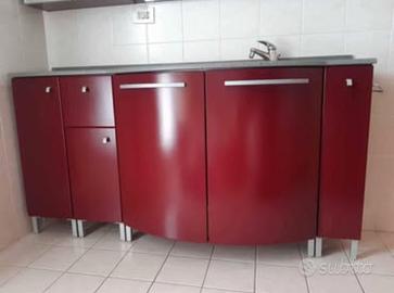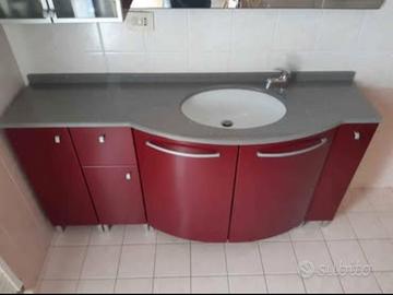 Composto da mobile inferiore con piano starlight 163x49 H.86, vasca in ceramica 50x35, sulla dx carrello estraibile,profondo contenitore a 2 ante centrali, a sx 2 ante e 1 cassetto. Con porta salvietta a dx ingombro 7 cm.